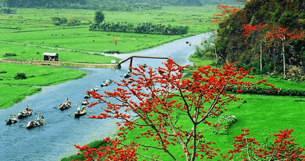 13:00 Xe đưa Quý khách đi thăm khu du lịch Sinh Thái Tràng An, Tràng An có tới 31 hồ, đầm nước nối thông nhau với 48 hang động. Mỗi hang động có tên gọi riêng và những nét đặc trưng khác biệt như: Hang Địa Linh, Sinh Dược, hang Tối, hang Sáng, hang Mây... Sự hòa quyện giữa vẻ đẹp của các hang động và sông nước đã tạo cho Tràng An vẻ đẹp nên thơ.