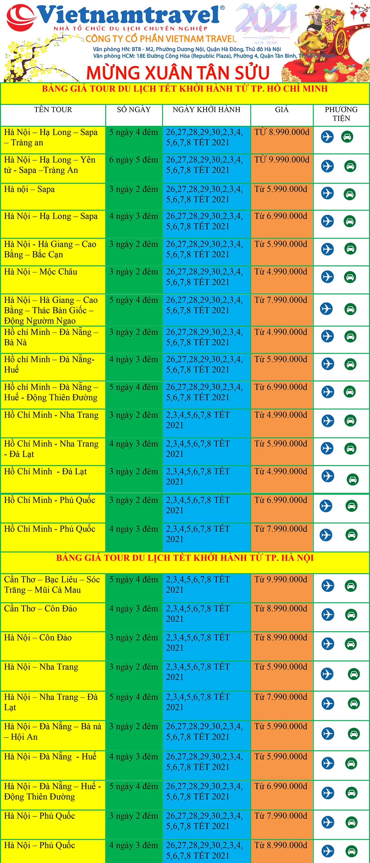 Theo truyền thống của người Việt thì Tết là dịp để đoàn viên, tụ họp bên nhau, thăm họ hàng. Nhưng thời điểm ấy cũng là khoảng thời gian đẹp nhất trong năm, nếu bạn đã cảm thấy hơi nhàm chán với những khung cảnh quen thuộc của mai, đào thì hãy lên kế hoạch cho một chuyến du lịch Tết Tân Sửu 2021, để trải nghiệm cảm giác du xuân đón Tết thật mới lạ tại những vùng đất mới.